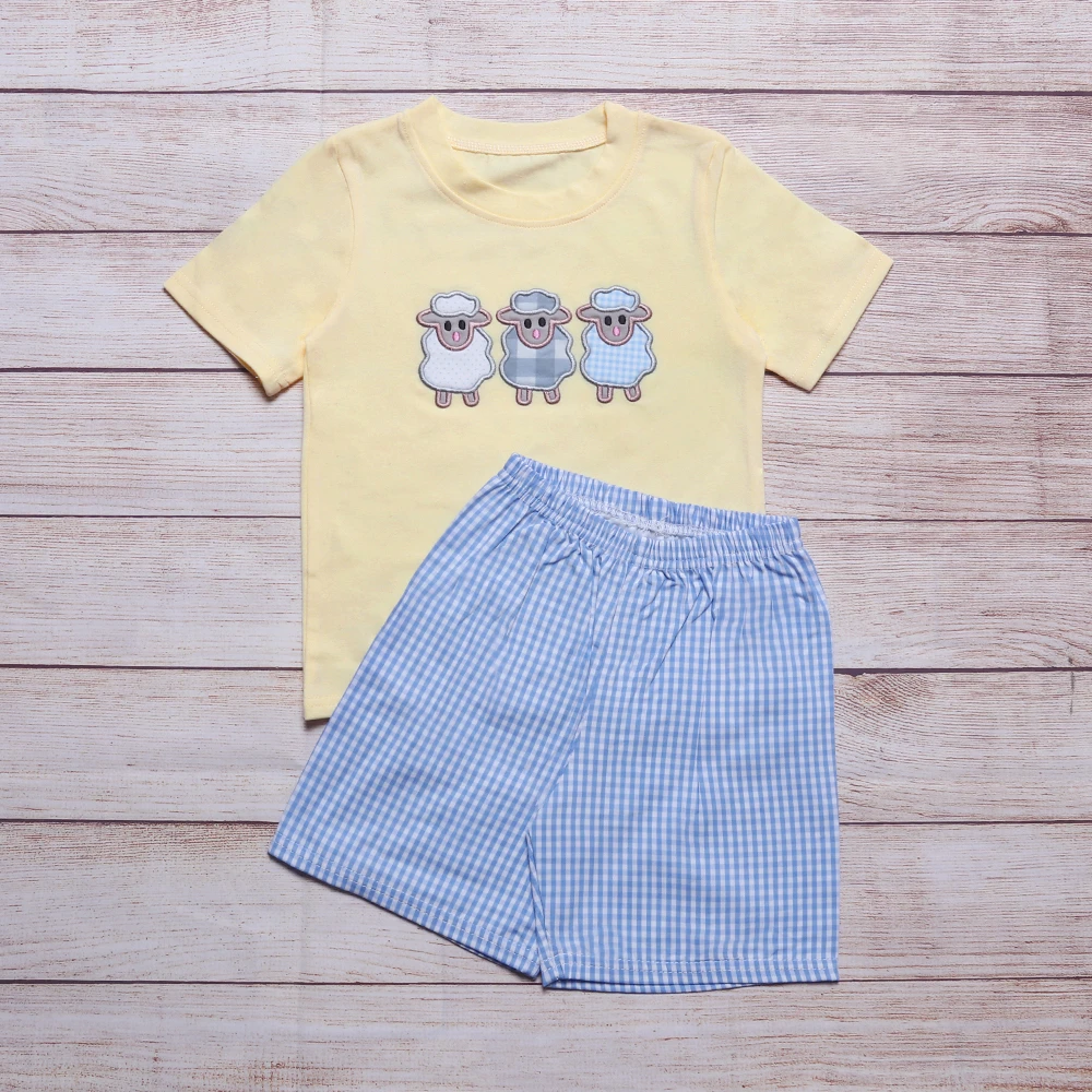 Wholesale Hot Sale Kids Shorts Outfits Cartoon Cute Sheep Yellow Short Sleeve For Baby Boys Blue Stripe Casual Shorts 2pcs Set Clothing Sets Aliexpress