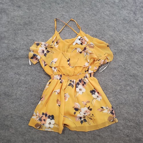 Forever 21 Dress Women Medium Yellow Short Sleeve Floral Cold Shoulder Ladies Ebay